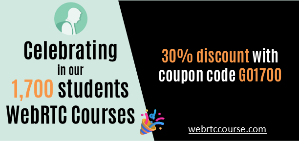 Use coupon code GO1700 for a one time 30% discount on all WebRTC courses - 10 first users only.